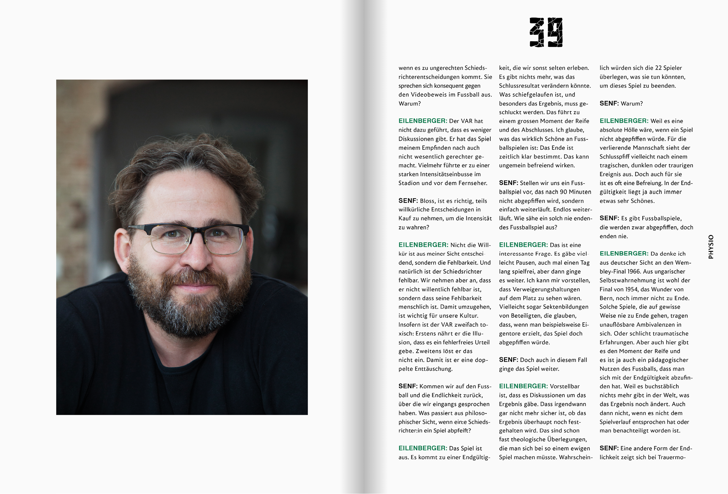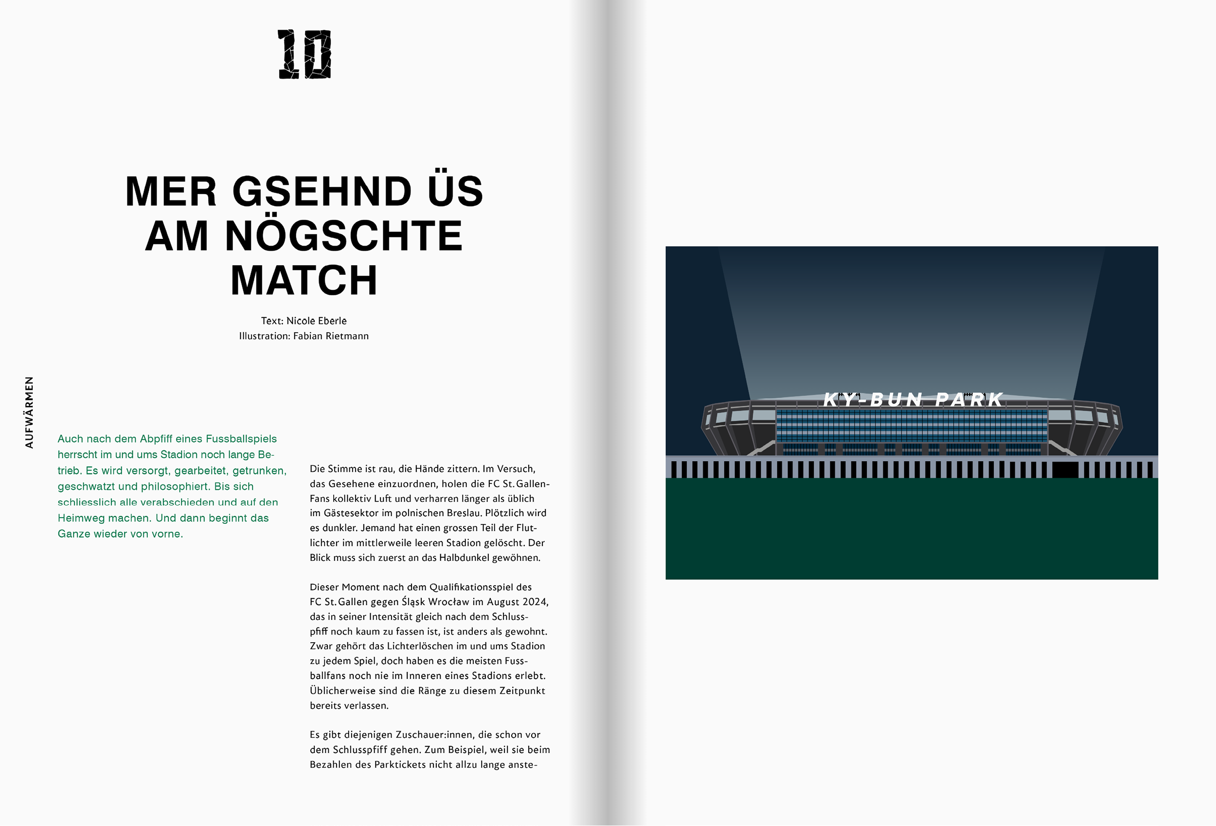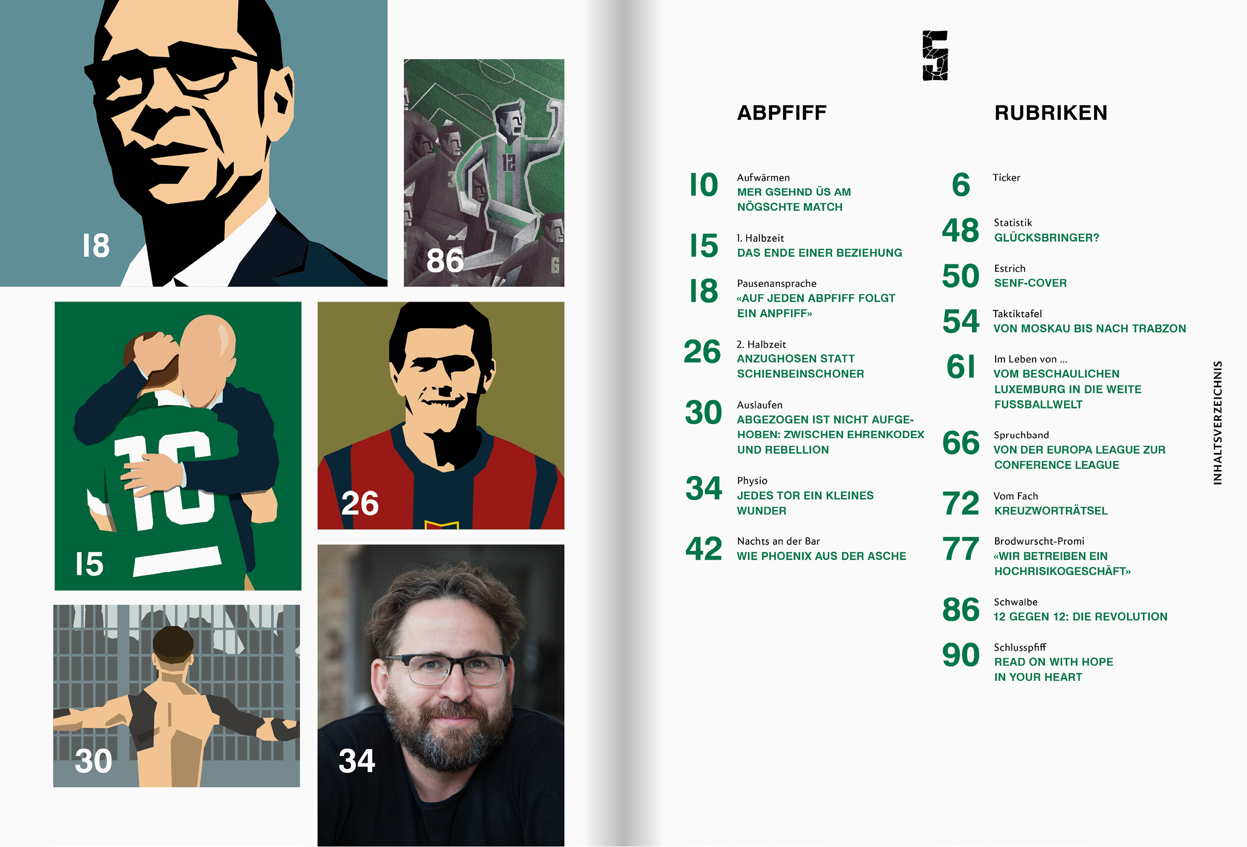 «Auf jeden Abpfiff folgt ein Anpfiff.» Das sagt Matthias Hüppi in der Pausenansprache unserer Jubiläumsausgabe mit dem Titelthema «Abpfiff». Mit Hüppi sprechen wir über einen Schlusspfiff, der noch nicht stattgefunden hat, mit Peter Zeidler über einen, der schwergefallen ist, und mit Wolfram Eilenberger über ein Fussballspiel ganz ohne Schlusspfiff. Zudem gehen wir mit Beni Huggel der Frage nach, welche Möglichkeiten Profisportler:innen nach dem Karriereende offen stehen, widmen uns Ultragruppierungen, die sich auflösen, und Fussballclubs, die wie Phoenix aus der Asche steigen.